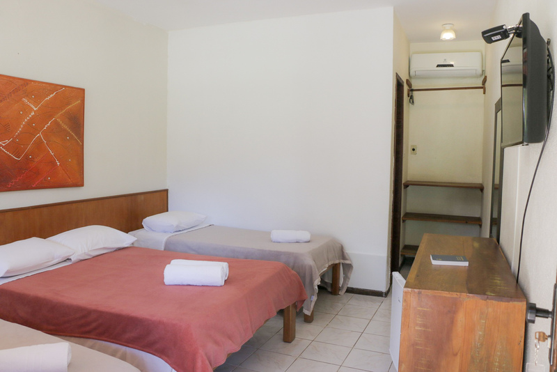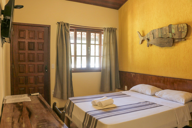 O quarto Standard Casal é ideal para quem busca conforto e praticidade em um ambiente acolhedor. Equipado com uma cama de casal, oferece vista para o jardim, ar-condicionado, ventilador de teto e uma charmosa decoração que convida ao descanso. Conta ainda com frigobar e uma mesa de trabalho, proporcionando comodidade tanto para momentos de lazer quanto para quem precisa trabalhar durante a estadia.